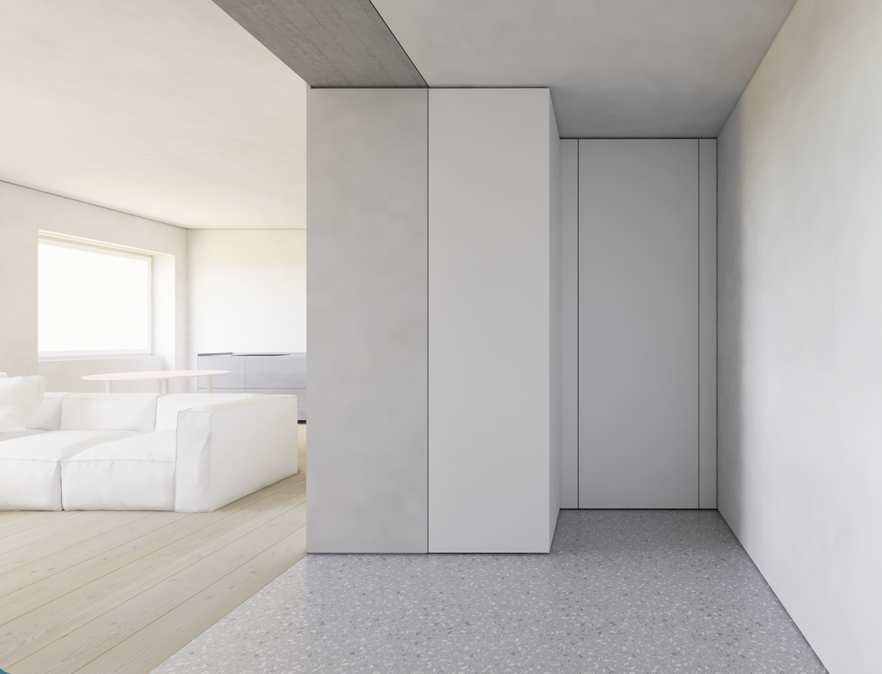 Komplexná rekonštrukcia bytu bola realizovaná s dôrazom na materiálovú autenticitu, akustický komfort a minimalistický detail. Priestor je definovaný prémiovými povrchmi a technológiami, ktoré rešpektujú pôvodnú substanciu bytového domu.