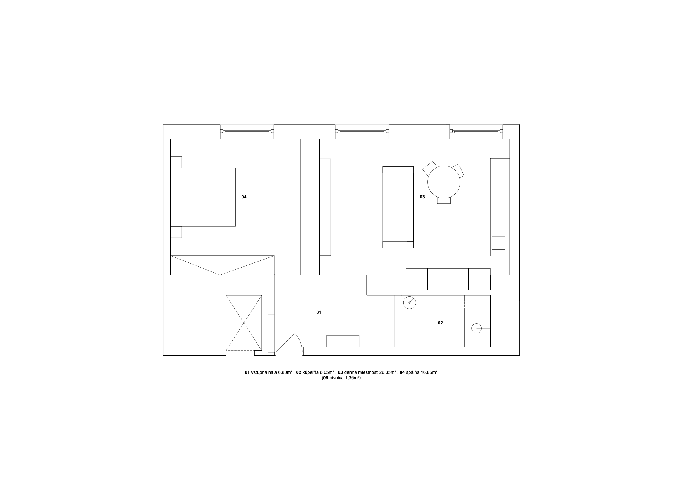 • Svetlo a priestor: Vďaka premyslenej dispozícii a veľkoformátovým hliníkovým oknám  je byt naplnený ucelenou svetelnou atmosférou po celý deň.