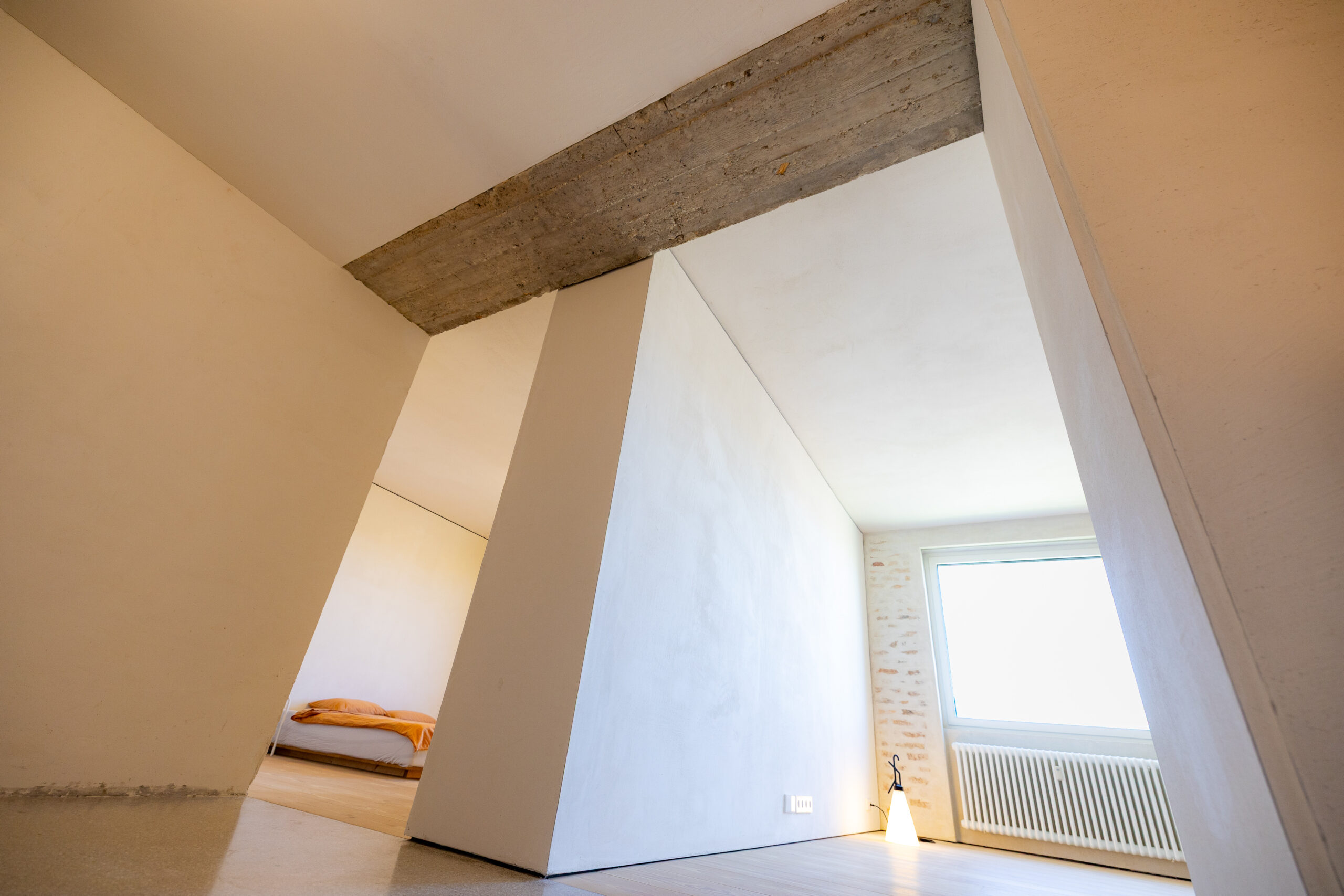 Interiér je oslavou konštrukčnej podstaty a surového minimalizmu. Architekt tu pracoval s odhalením pôvodných materiálov a ich kontrastom s tými najmodernejšími.