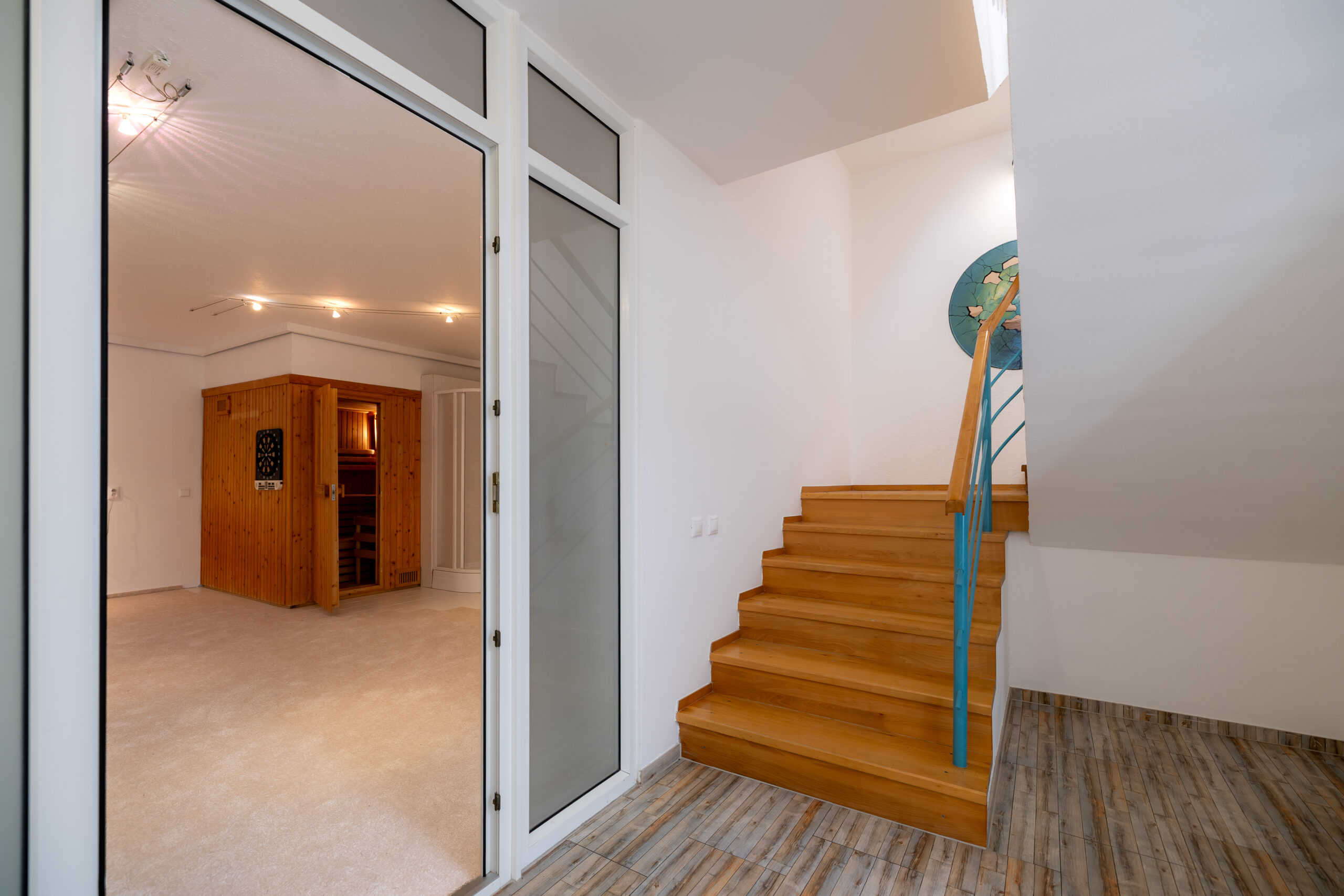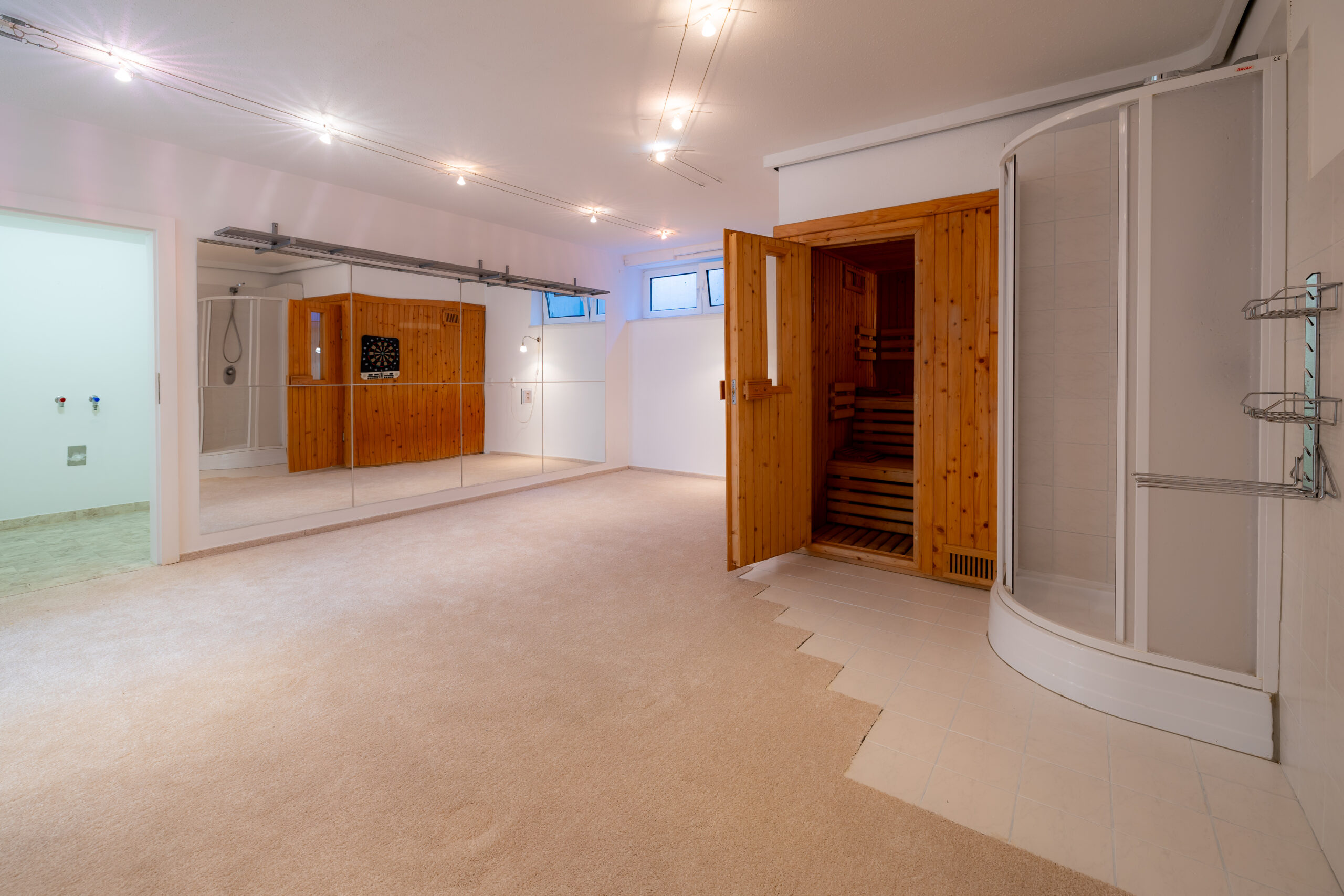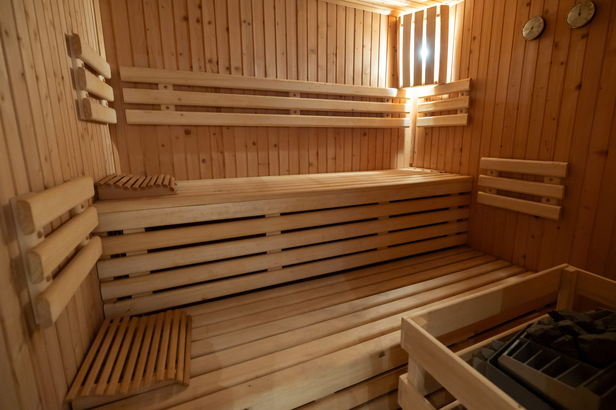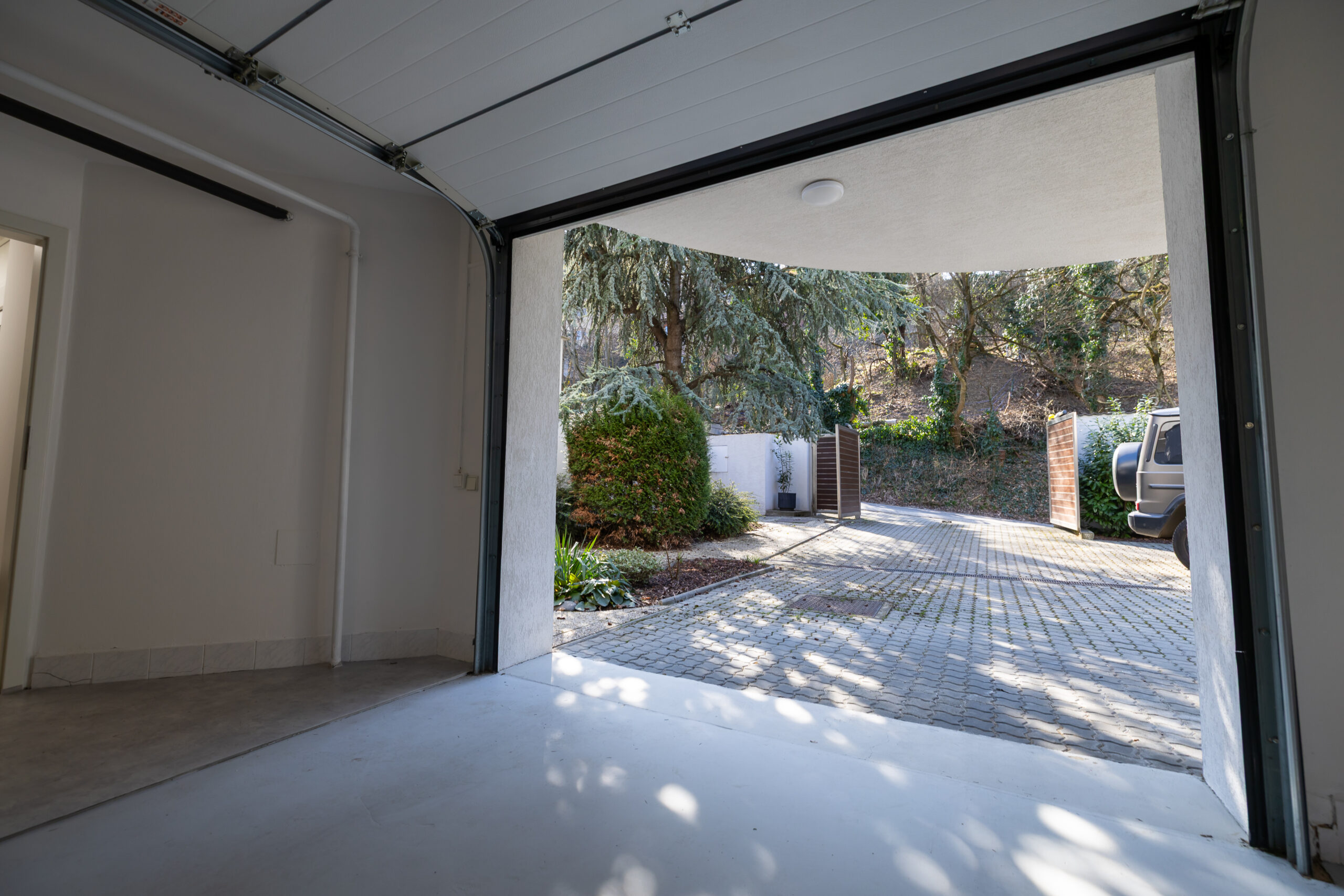 Vstupná úroveň dedikovaná logistike a regenerácii. Obsahuje privátnu wellness zónu so saunou a rozsiahle skladové kapacity (ideálne pre vínotéku či umelecký archív). Súčasťou je nadštandardná garáž (42 m²) s dĺžkou 11,6 m, schopná poňať dve veľkoformátové limuzíny v tandemovom usporiadaní a ďalšie 3 pakovacie miesta na pozemku.