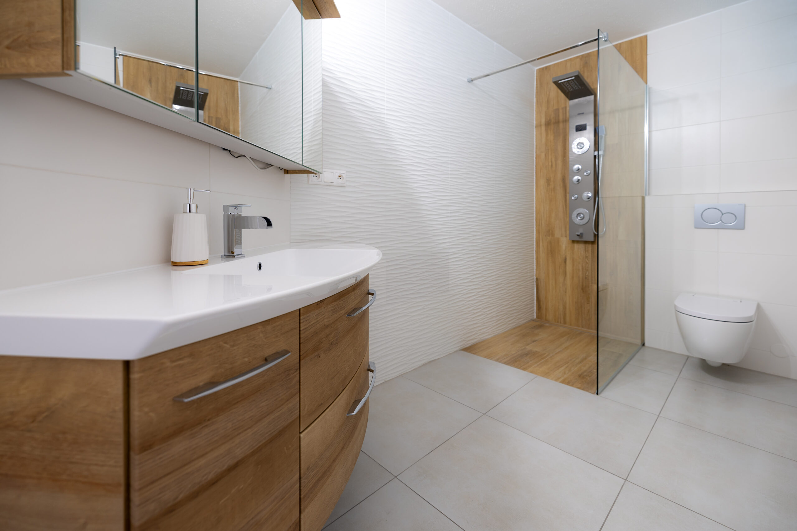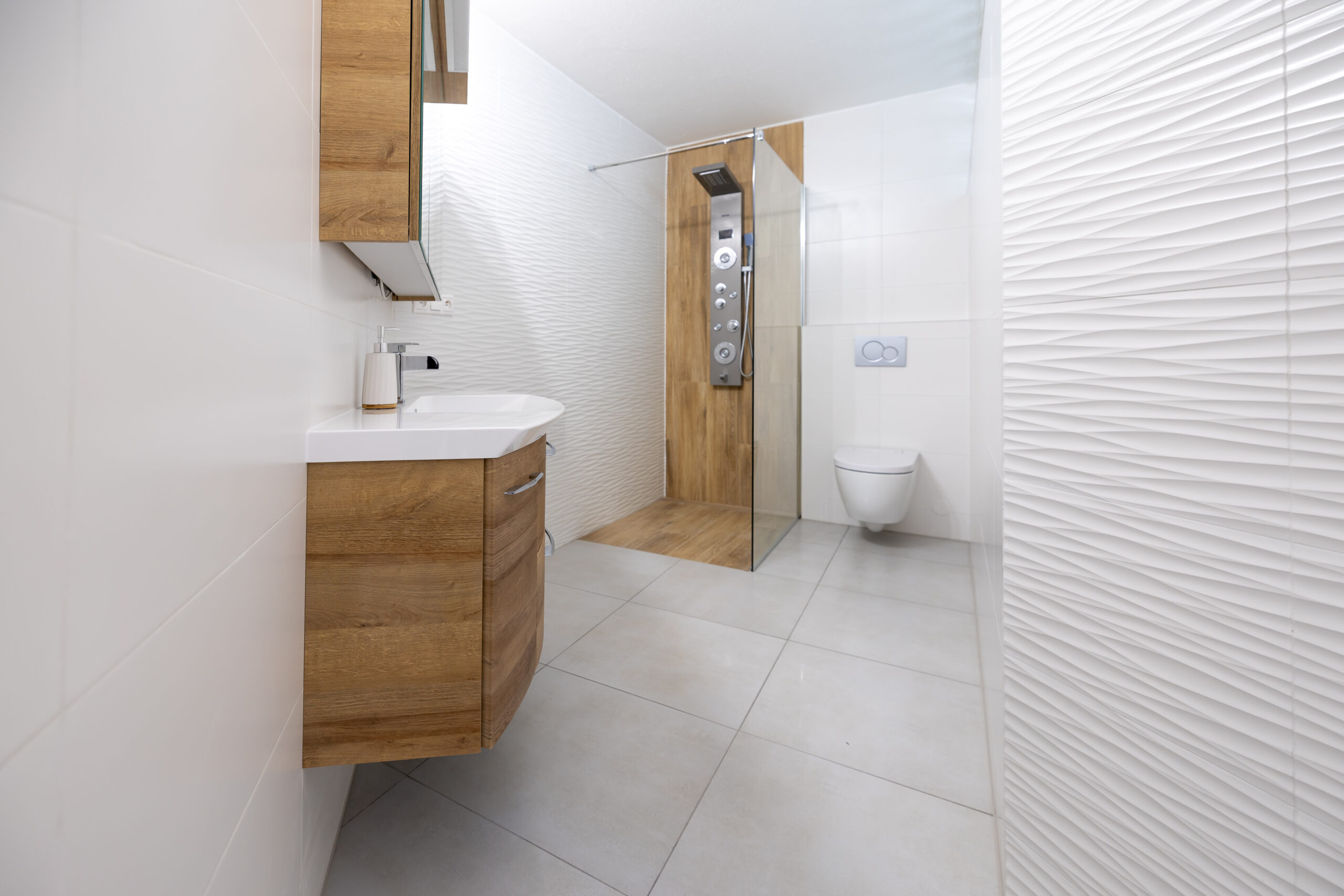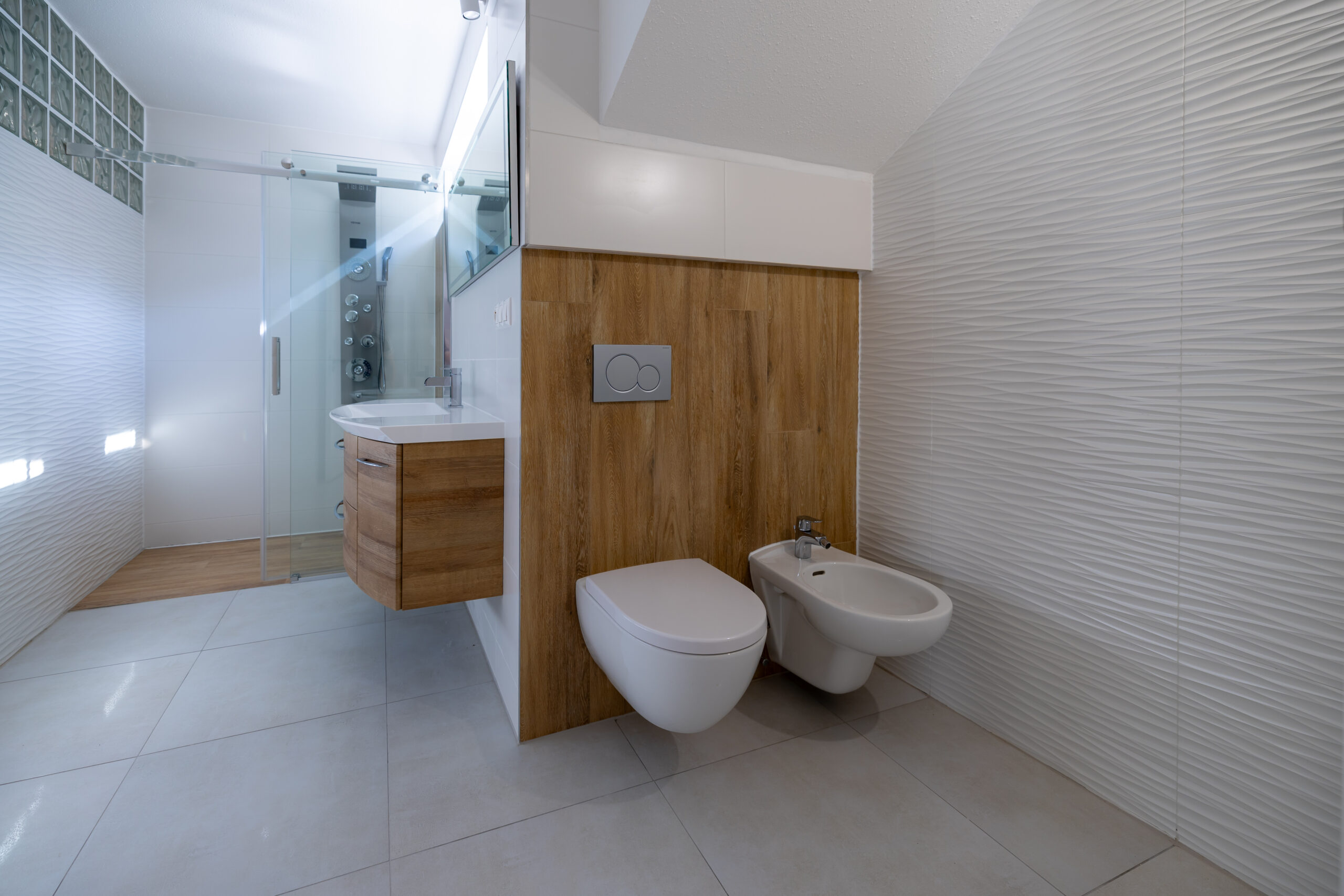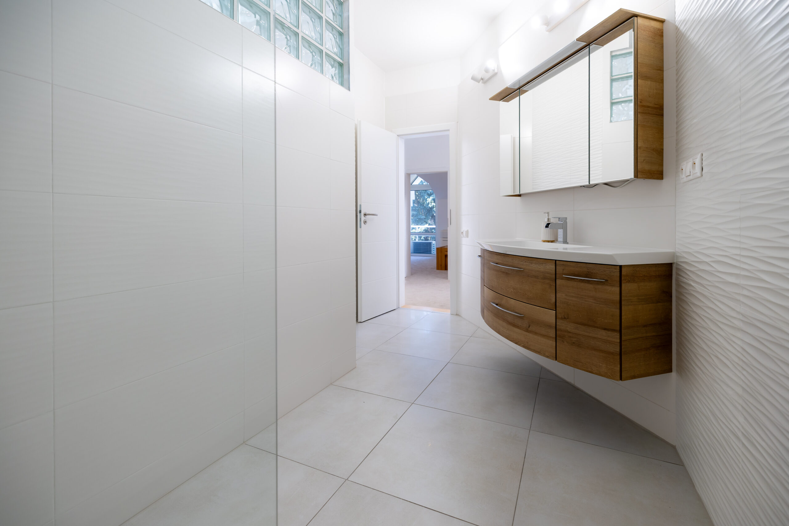 Najvyššie podlažie je koncipované ako privátna svätyňa majiteľov. Primary bedroom s en-suite kúpeľňou a šatníkom ponúka vďaka galérii pocit nekonečného priestoru, pričom si zachováva absolútnu intimitu a výhľady do zelene.